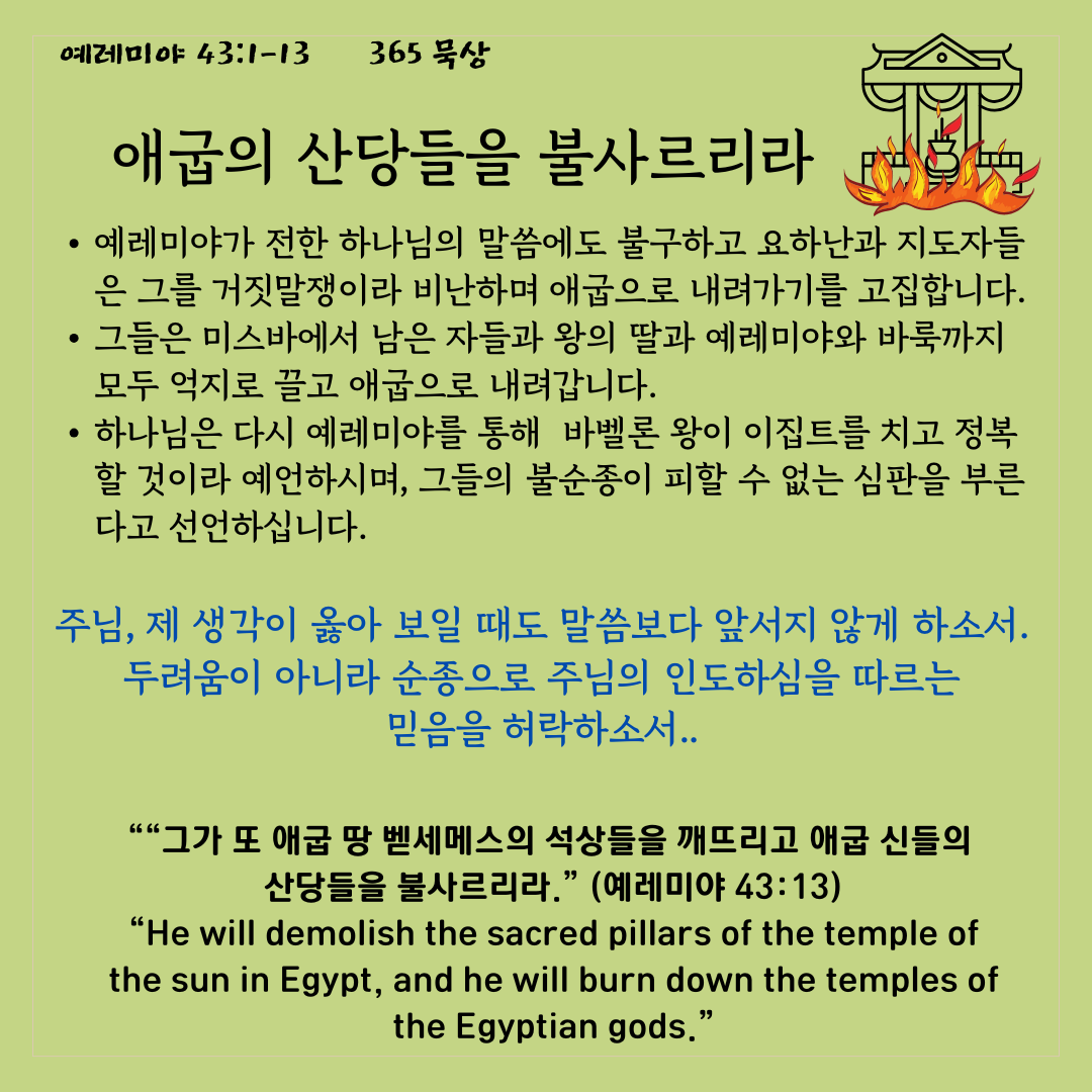 렘 43:1-13 하나님의 섭리를 기대하면서 순종하자